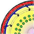 刮膜片型式為徑向滑動(dòng)型,它由WFE-VA 刮膜蒸發(fā)器演變而來(lái);刮片鑲嵌在轉(zhuǎn)子的U導(dǎo)槽內(nèi),當(dāng)轉(zhuǎn)子旋轉(zhuǎn)是時(shí)刮片受離心力的作用從U導(dǎo)槽內(nèi)徑向滑到加熱壁面。導(dǎo)槽均勻分布在轉(zhuǎn)子圓周(見(jiàn)圖1),轉(zhuǎn)子呈鼠籠型,在導(dǎo)槽之間設(shè)有動(dòng)態(tài)汽液分離裝置,防止液滴的飛濺及夾帶。