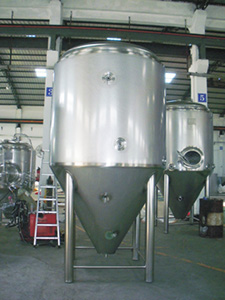我廠設(shè)計(jì)的發(fā)酵罐為標(biāo)準(zhǔn)式罐型,這種罐型當(dāng)公稱容積在6m以下時(shí)罐采用夾套式。發(fā)酵氣的冷卻或加熱,均由夾套來(lái)完成。公稱容積為6m以上時(shí),發(fā)酵氣的冷卻由立式盤管來(lái)?yè)?dān)負(fù),在罐內(nèi)盤管的連接方面我們作了改進(jìn)。這主要避免在罐體上多開孔,開成死角。這種連續(xù)方式在實(shí)際使用中得到滿意的效果。